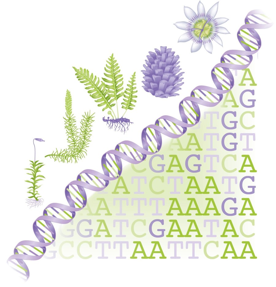 Left side: Ceratopteris richardii (fern); Middle: Marchantia polymorpha (liverwort); Right side: Physcomitrella patens (moss).
