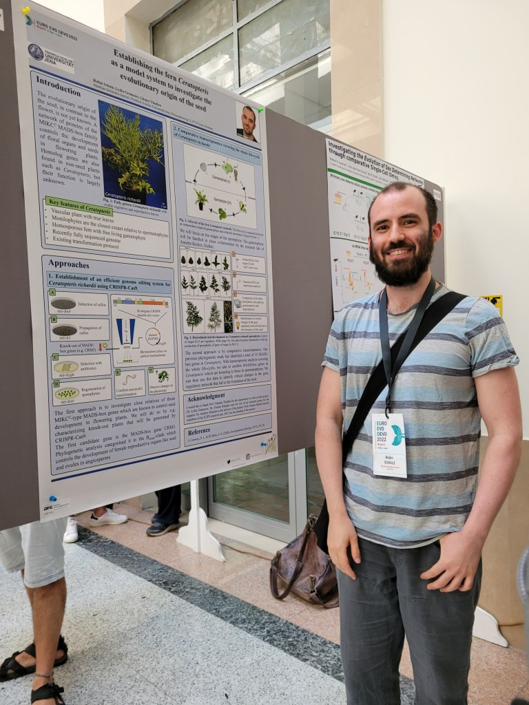 Last month, Robin Schulz (FSU, Jena) presented a poster about his PhD project at the EURO EVO DEVO 2022 conference, which took place in Napoli (Italy) from the 30th of Mai to the 3rd of June. His poster (P007) was titled: “Establishing the fern Ceratopteris as a model system to investigate the evolutionary origin of the seed“. Prof. Günther Theissen (FSU, Jena) was one of his co-authors.